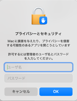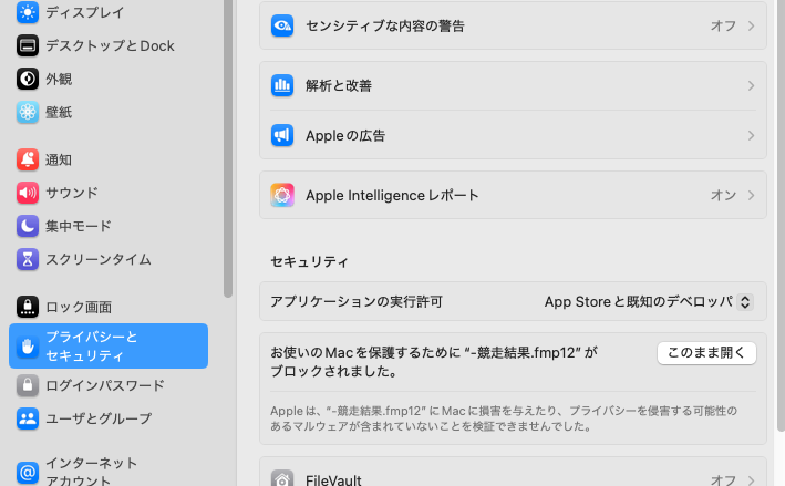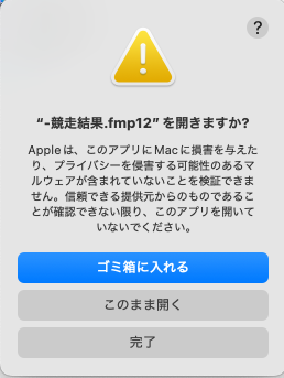 お使いのMacを保護するために [★★★★★★.fmp12] がブロックされました。