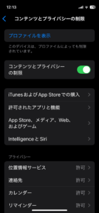 設定>スクリーンタイム>(制限)コンテンツとプライバシーの制限>>
